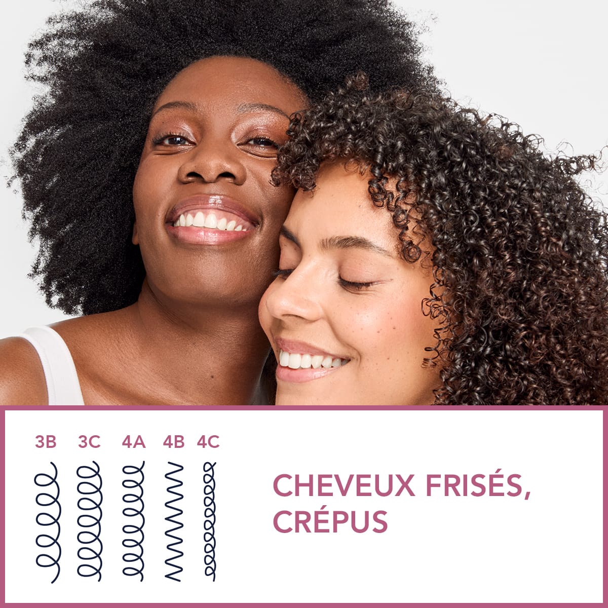 * Etude clinique réalisée sous contrôle dermatologique – % de satisfaction chez 33 volontaires (très bouclés à crépus selon l’échelle de Walker) – Résultats 1 application de la crème et du gel