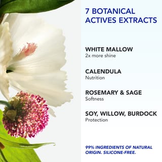 Our white mallow extract provides twice as much shine and softens the hair fiber.***