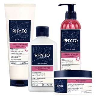 The Shampoo INTENSE CURLS that gently cleanses and nourishes very curly and coily hair. The Mask INTENSE CURLS that instantly detangles and nourishes very curly and coily hair. The Rich Cream INTENSE CURLS that defines the natural shape of the curls while nourishing them intensly without a stiff feel. The Anti-Frizz Curls Gel that locks the natural shape of curls and hydrates the hair fiber.